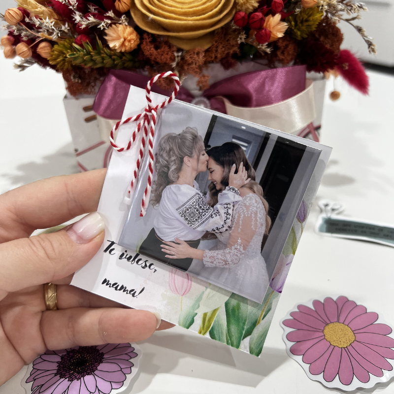 Mărțișorul este format dintr-un magnet foto personalizat, creat cu poza aleasă de tine 📸, pentru a transforma o amintire dragă într-un cadou de primăvară cu adevărat special 💖