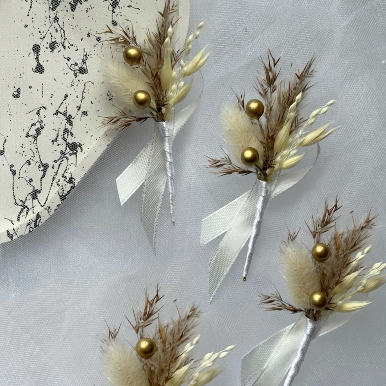 🌿 Cocardele sunt realizate manual din flori uscate naturale, atent alese pentru a reda un aspect elegant și armonios.